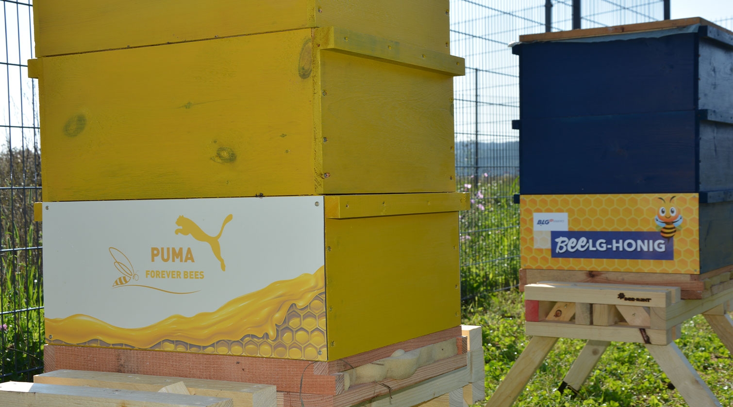 As soon as beekeeper Matthias Thoma opened the beehives, a loud buzzing filled the air and thousands of bees took a look outside of their new homes, branded with the logos of PUMA and our logistics partner BLG. “Thirty years ago, we wouldn’t have been able to be so relaxed about this, as the bees were much more aggressive back then,” Thoma, who says he never wears any protective clothing, explained. “Nowadays, we pick a type of bee with very docile characteristics.”
