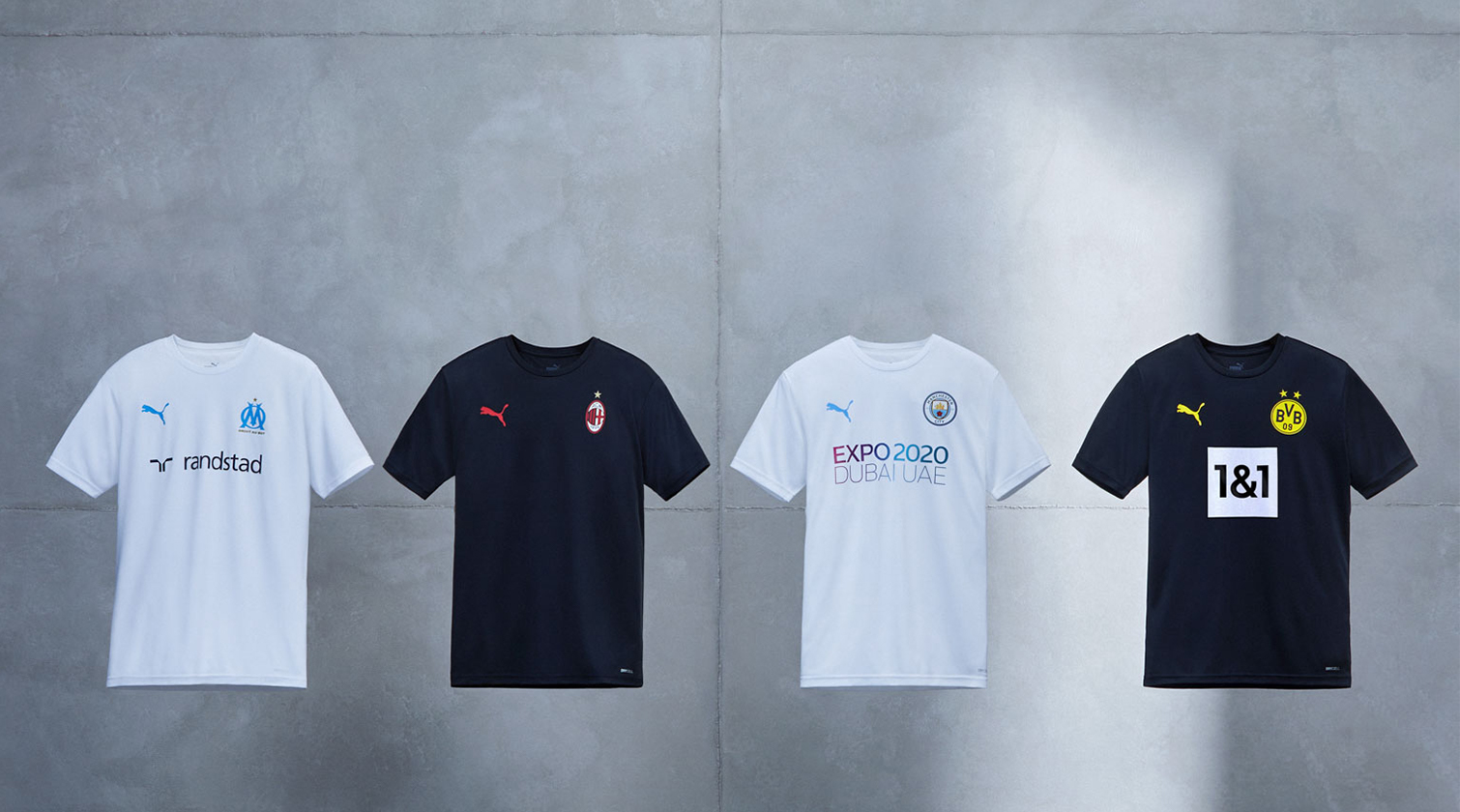 We will pilot an innovative production process to use existing football jerseys to produce new ones. This initiative is aimed at reducing waste and paving the way towards more circular production models in the future. The process used in RE:JERSEY means that old garments that feature logos, embroideries and club badges, which previously hindered recycling efforts to turn old garments into new ones, can now be used. The RE:JERSEY project takes football kits as the major ingredient to create yarn for new jerseys. The products made in the RE:JERSEY project will be worn on-pitch during pre-match warm-ups by PUMA Clubs Manchester City, AC Milan, Borussia Dortmund and Olympique de Marseille. The teams will wear the jerseys ahead of their respective league fixtures in late April and May, starting with Manchester City on April 23. Check them out!