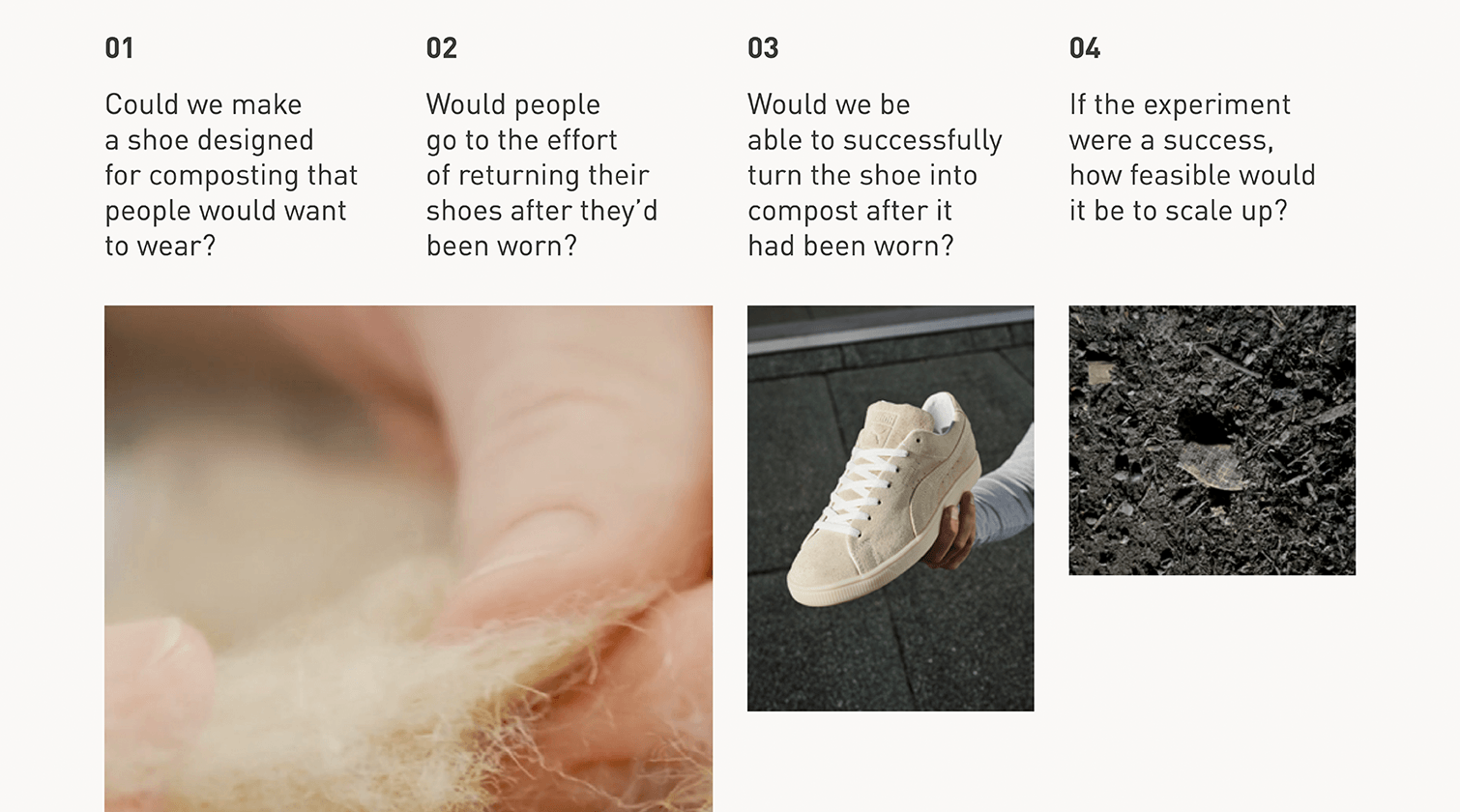 “While the RE:SUEDE could not be processed under the standard operating procedures for industrial composting, the shoes did eventually turn into compost. We will continue to innovate with our partners to determine the infrastructure and technologies needed to make the process viable for a commercial version of the RE:SUEDE, including a takeback scheme, in 2024.”