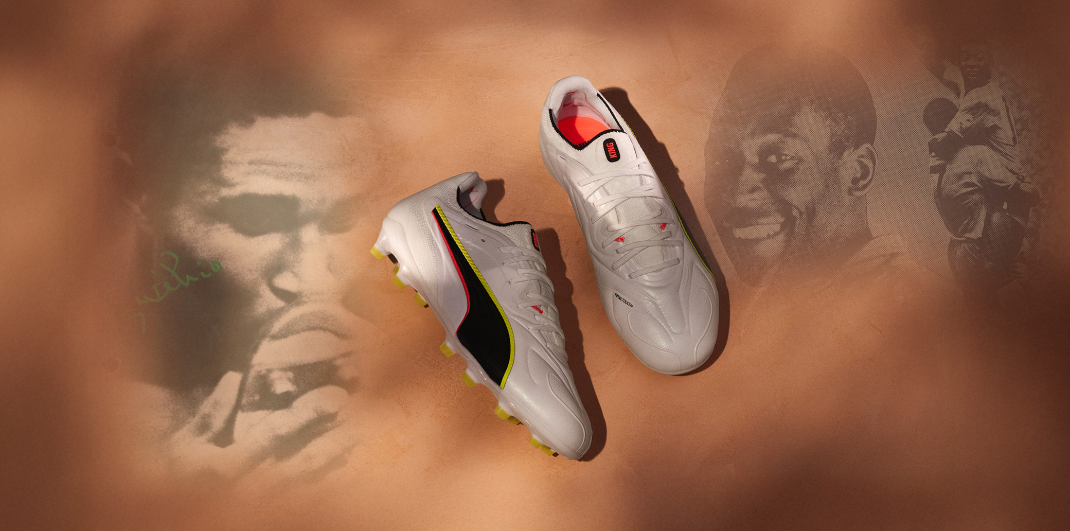 Diese Philosophie hat ihren Ursprung im Jahr 1966, als Rudolf Dassler es einfach formulierte: “Der KING ist mein bester Schuh – für den besten Spieler auf dem Platz.”Diese Idee brachte den KING an die Spitze – getragen von einigen der größten Spieler der Fußballgeschichte. Pelé, Eusébio, Matthäus, Netzer, Buffon, Cruyff, Maradona und viele andere. Der PUMA KING wurde zu einem Spieler auf der Weltbühne und zu einer Ikone der Marke. Der King ist mit PUMA verbunden – und PUMA mit dem KING.