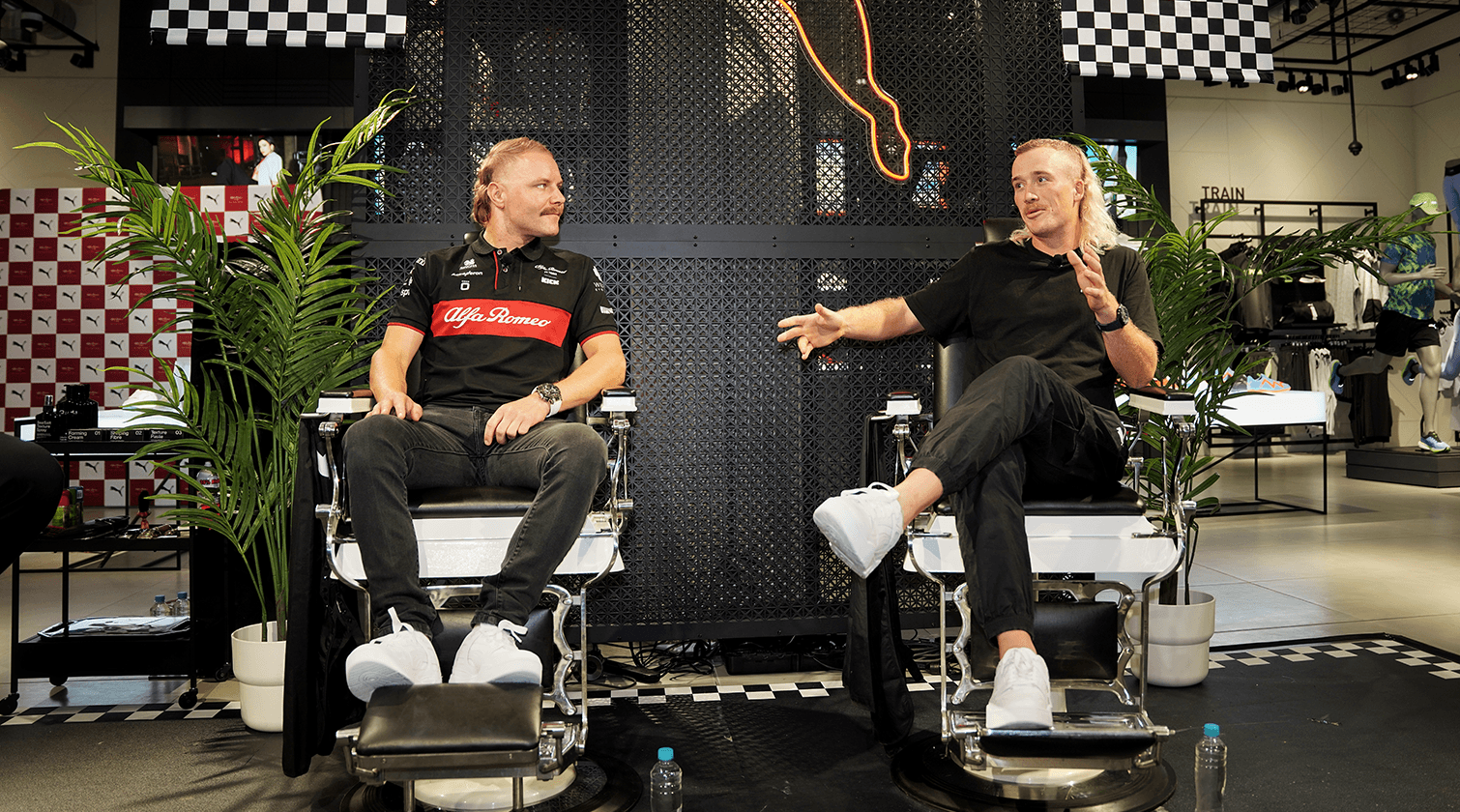Wessen Vokuhila ist besser? PUMA Australien begrüßte die Vokuhila-Ikonen Valtteri Bottas und Nedd Brockmann zu einem “Race to the Finnish”-Wettbewerb im PUMA Chadstone Store vor dem Großen Preis von Australien an diesem Wochenende. Die beiden traten in von Australien inspirierten Herausforderungen gegeneinander an und nahmen an einer Live-Fragerunde teil. Valtteri durfte sich auch hinter dem Friseurstuhl versuchen - alles für einen guten Zweck. Unten erfahren Sie mehr!