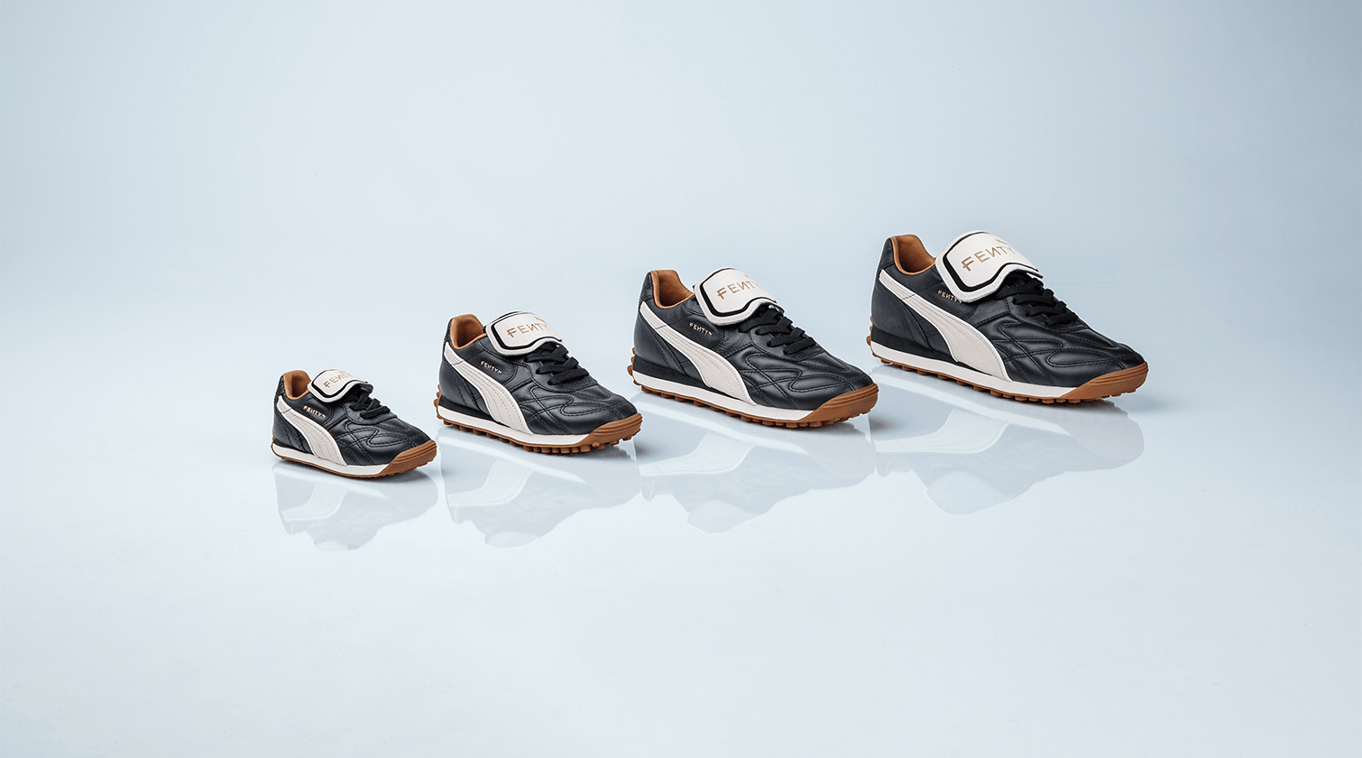 Der FENTY x PUMA Avanti, die erste Schuhkollektion der Partnerschaft, ist eine unkonventionelle Mischung aus zwei PUMA-Ikonen Er verbindet das hochwertige Lederdesign des King-Fußballschuhs mit der Außensohle des traditionellen Laufschuhs Easy Rider.