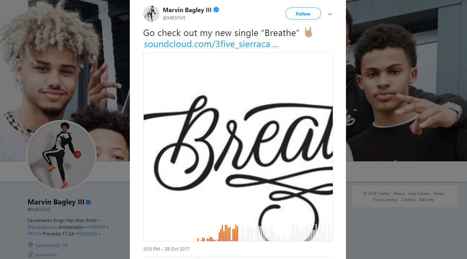 En plus d'avoir le soutien d'un expert tel que Jay-Z, Les athlètes signés par PUMA contribuent également à notre proposition, puisqu'ils sont non seulement les meilleurs athlètes de la planète, mais aussi les plus grands. la prochaine génération de grands joueurs de la NBA, mais aussi de vivre la culture du basket en dehors du terrain. Par exemple : Marvin Bagley III est l'une des recrues les plus prometteuses, jouant pour les Sacramento Kings, mais il est aussi un artiste de hip-hop.