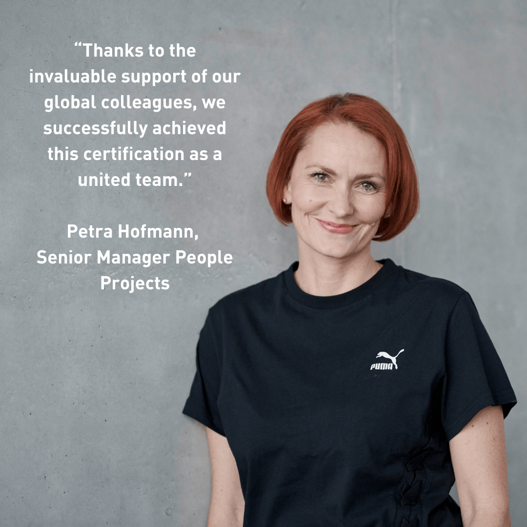 Achieving this global recognition required teamwork and dedication from every corner of the organization. Our achievement underscores the strength of our global collaboration and showcases how we were able to keep our unique PUMA spirit while aligning standardized practices with local needs.“As the Global Project Manager, I was responsible for providing evidence of the consistently done HR practices required for certification. A key aspect was differentiating between globally standardized practices and locally tailored measures. The greatest challenge was collecting and compiling this information from all entities within the given timeframe while familiarizing Top Employer with PUMA’s unique culture. However, thanks to the invaluable support of our global colleagues, we successfully achieved this objective as a united team.”