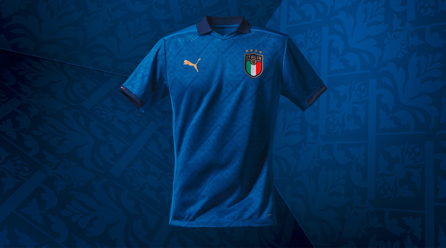Italian football has had a lasting effect on the global game both on and off the pitch. The Azzurri home kit is inspired by this culture-defining era of art and architecture. The Home Kit reinterprets the luxurious renaissance patterns of the past into a modern geometric graphic, tonally incorporated into the blue jersey, celebrating the nation’s influence on world culture and football alike. The Italy Away kit celebrates all of Italy by featuring the country name and flag colors in a bright, brilliant graphic alongside the centrally aligned FIGC emblem and PUMA Cat. Navy blue accents add an elegant finishing touch to the white Away jersey.