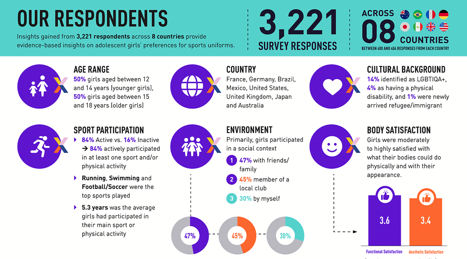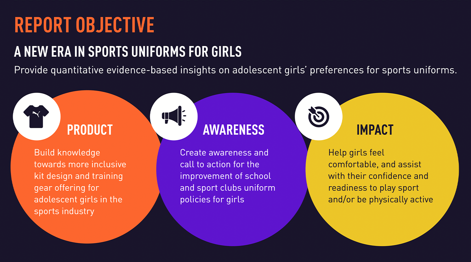 Can you provide an overview of your study on sports uniforms for girls and its objectives? Clare: We had over 3200 responses across eight countries from respondents and the objective was to gain evidence-based insights on, what do girls want for sport uniforms? What will encourage them to hopefully participate more in sport and physical activity?