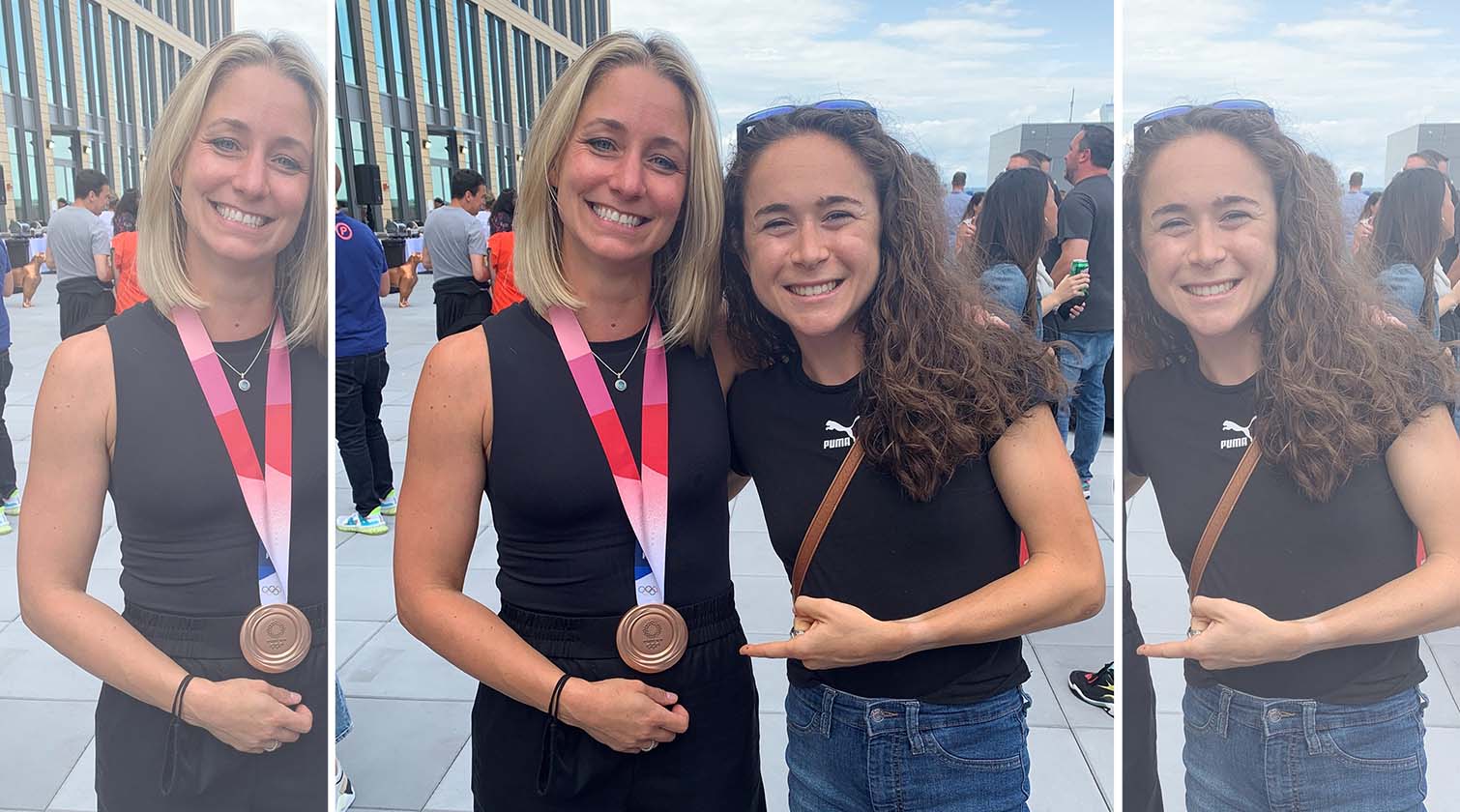 Erin Longin with Molly Seidel and the Olympic bronze medal