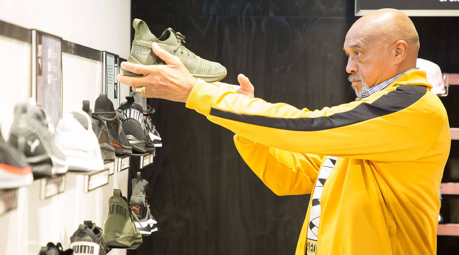 Tommie checking out the latest PUMA styles in the PUMA Store in Herzogenaurach (Photo Credits: Ralf Rödel/ PUMA)