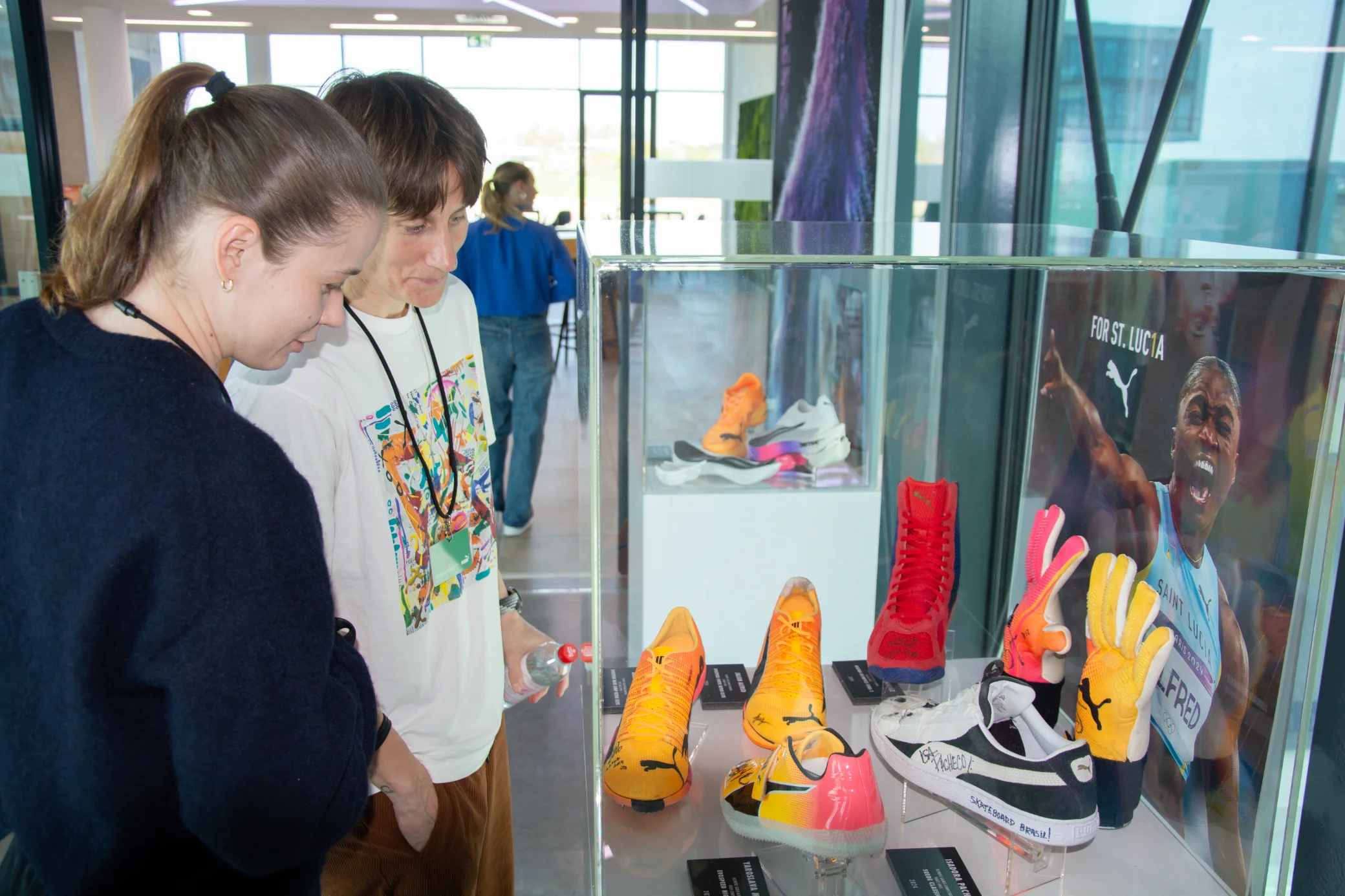 Ann-Katrin Berger signing her poster on the PUMA Archive bridge exhibition