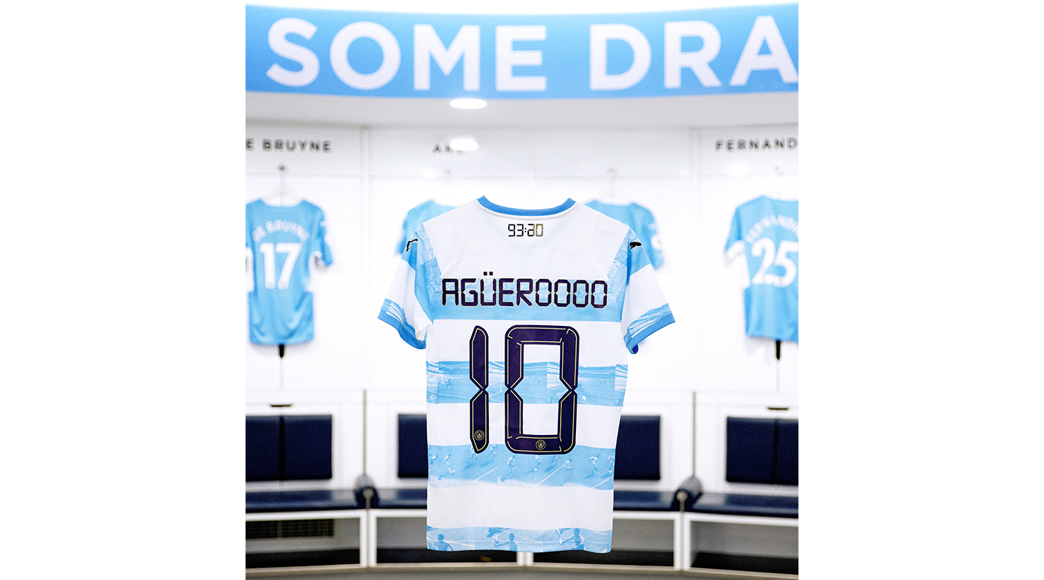 93:20 MANCHESTER CITY PRE-MATCH JERSEY AND ULTRA FOOTBALL BOOTS TO CELEBRATE THE 10 YEAR ANNIVERSARY OF THE FAMOUS SERGIO AGÜERO GOAL