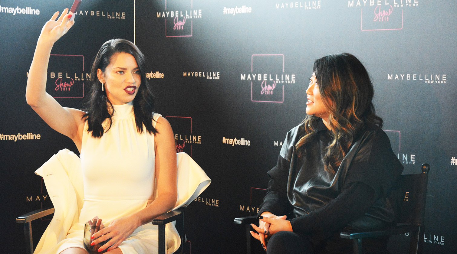 Adriana Lima getting ready backstage at Maybelline New York’s Show in Berlin.