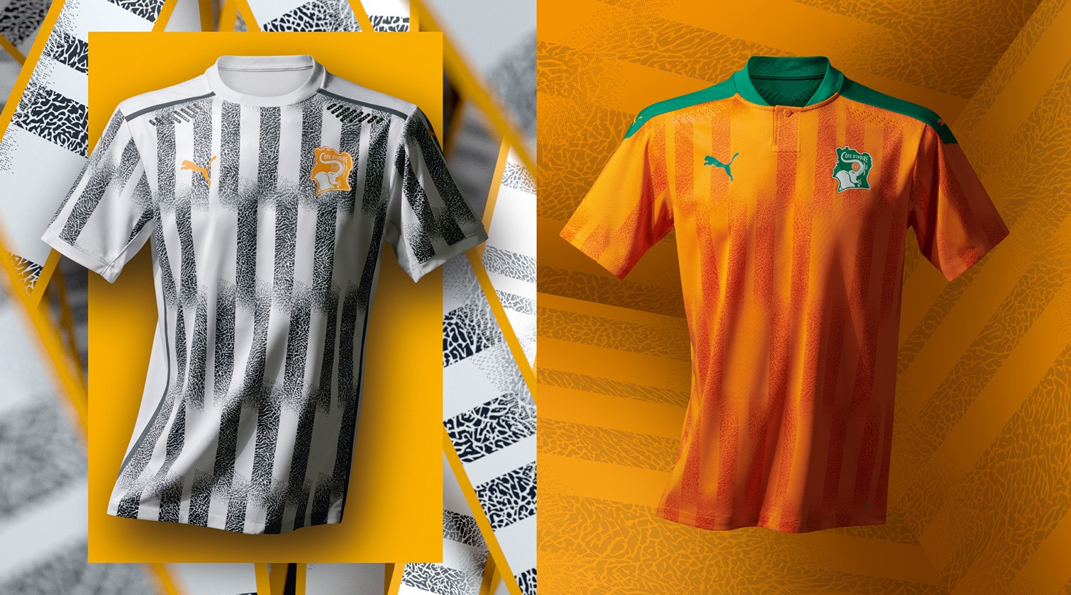 The new Ivory Coast Home and Away kits celebrate the Federations ‘Les Elephants’ nickname with all-over elephant print graphics.