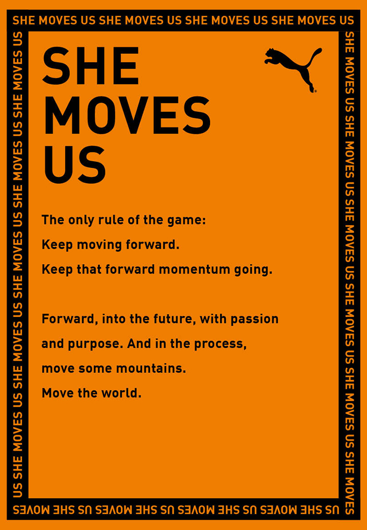 “Sharing stories of success is all part of changing the narrative, especially in fields like sports and entertainment that have tended to amplify the accomplishments of men. Women are already nailing it across the board and celebrating their achievements is exciting and empowering. It also encourages those rising up to aim for the stars. Now let’s show the world what we are capable of!” – Dua Lipa, global pop-star and PUMA ambassador