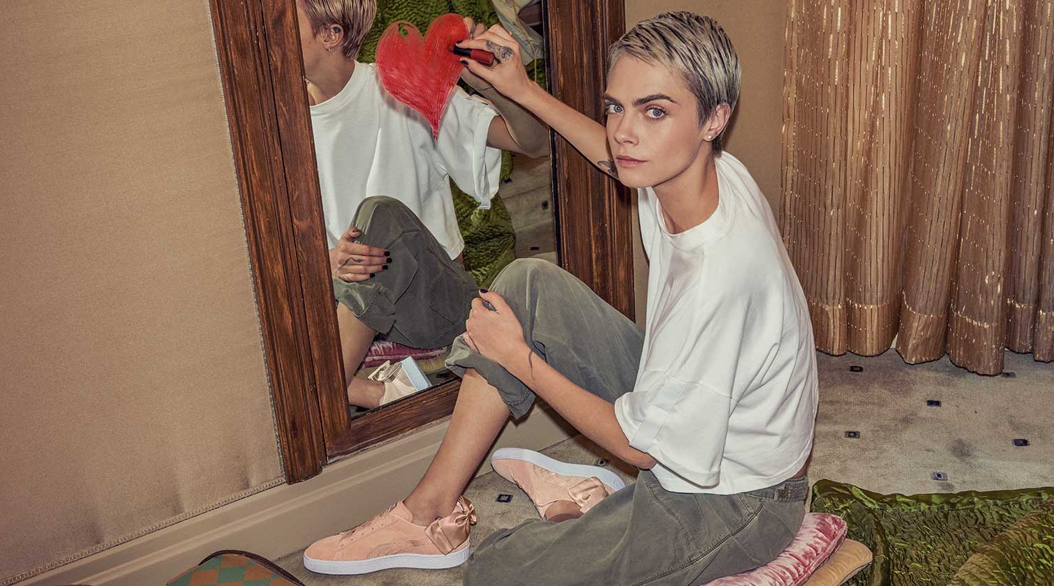 Worn by international model, actress and activist Cara Delevingne it is the perfect symbiosis of sports and fashion.