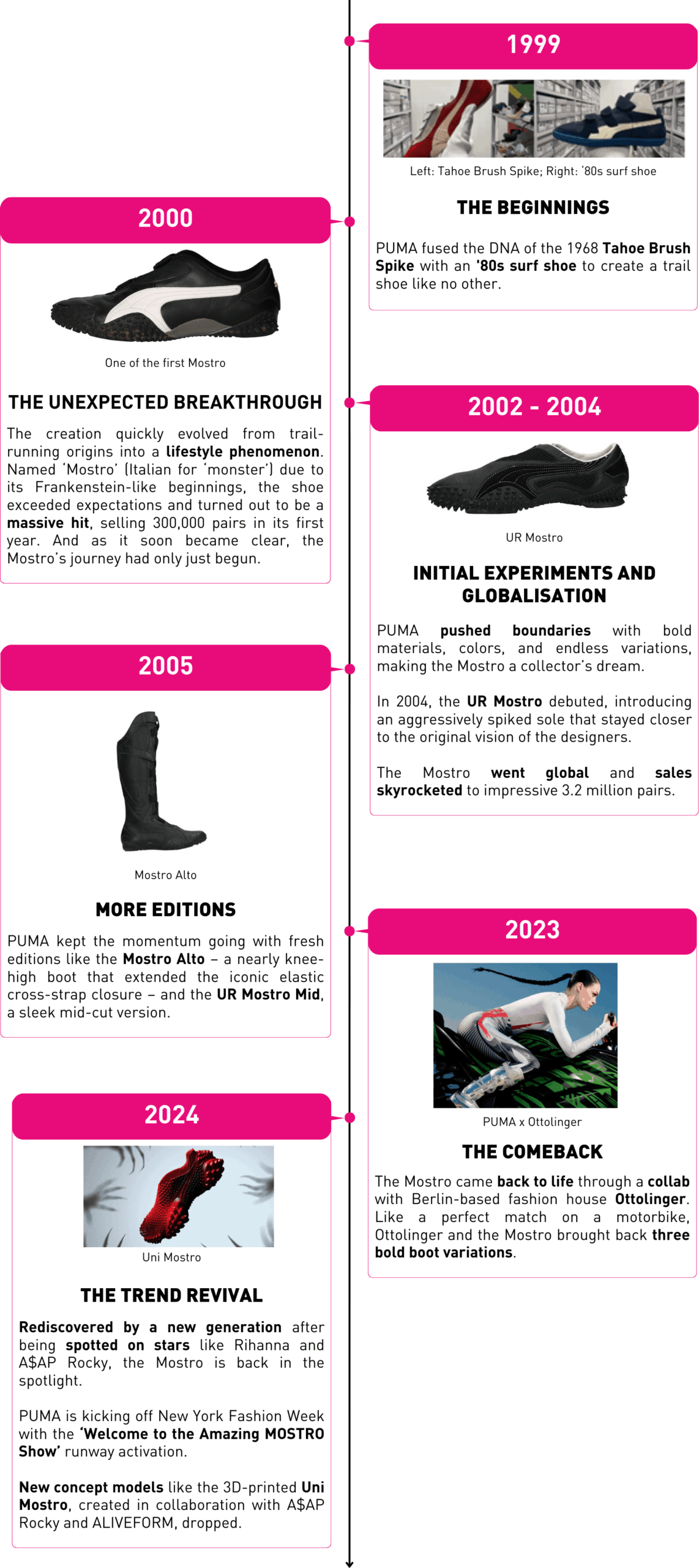 The PUMA Mostro sneaker is making headlines in fashion magazines and appearing on runways around the world – but few realize it was already a massive hit back in the 2000s. Together with Heiko Desens, PUMA’s Vice President of Creative Direction & Innovation, we took a deep dive into the sneaker’s history, from its origins to today.
